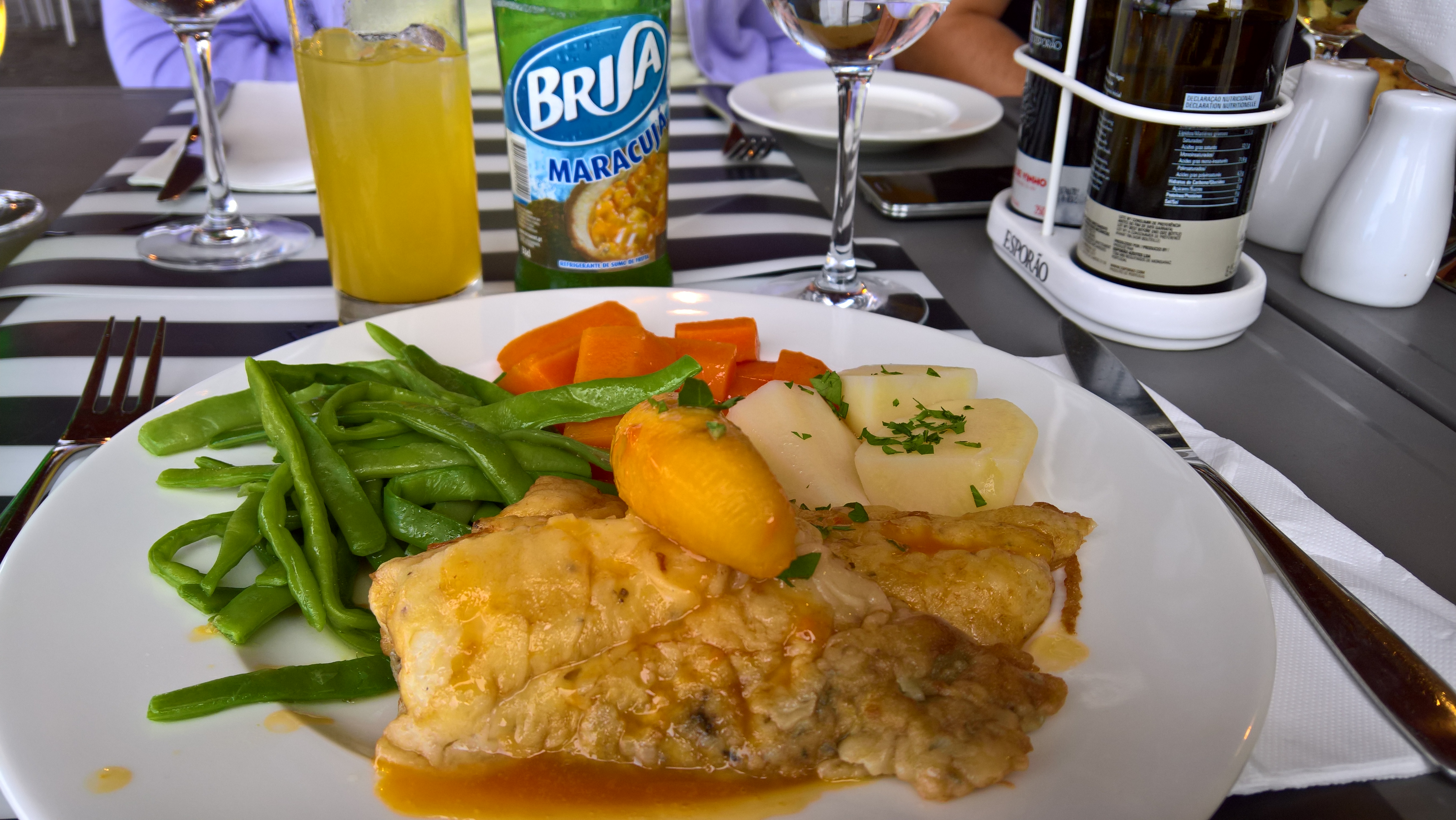 Als das Brot fertig ist und das Nebenhaus mit Kakerlakengift versorgt, machen wir uns auf den Weg zur Calheta. Müll und leere Flaschen packen wir in den grünen Einkaufskorb, den wir an den Müllcontainern stehen lassen. Im Restaurant an der Calheta lassen wir uns Thunfisch, Steak und Espada com banana schmecken, dazu Weißwein, Brisa, Bier. Auch ein Nachtisch geht noch. Als wir den Korb holen wollen, ist er weg – ein geklauter Korb geklaut, hm… Kann man nicht wirklich viel zu sagen, denke ich.